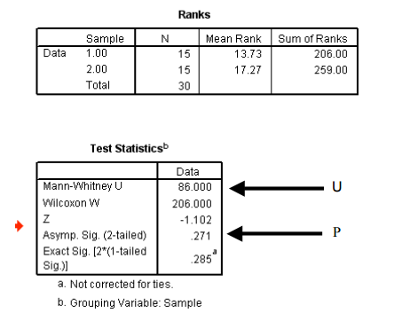 From a Mann Whitney test in SPSS you get a data table which looks like this: